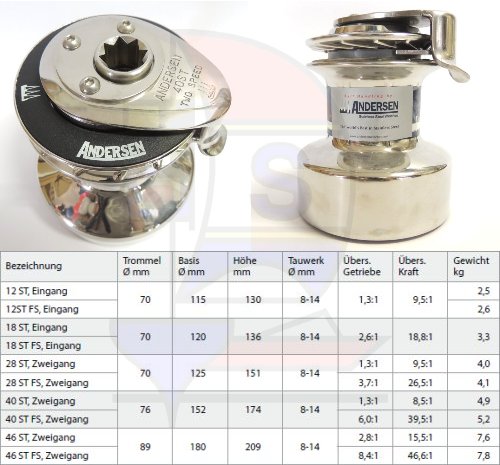 Produktinformationen "Andersen 2-Gang Schotwinde Nr. 40ST (BT) Edelstahl"