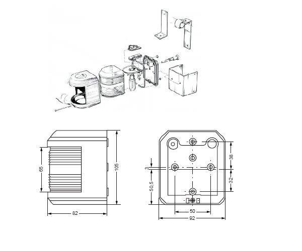 Serie 41: Navigationsbeleuchtung für Deutschland bis 20m Schiffslänge mit Kabelzuführung von hinten.