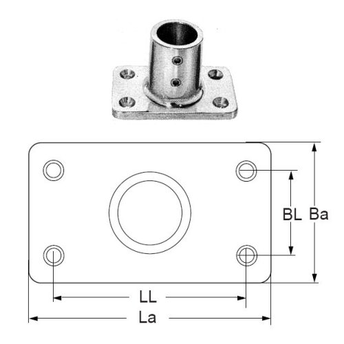 Relingsbeschlag aus Edelstahl mit eckiger Basis und 90Grad Neigung.