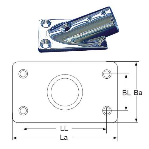 Relingsbeschlag aus Edelstahl mit eckiger Basis und 30Grad Neigung.