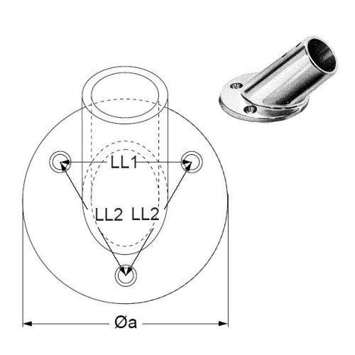 Relingsbeschlag aus Edelstahl mit runder Basis und 30Grad Neigung.