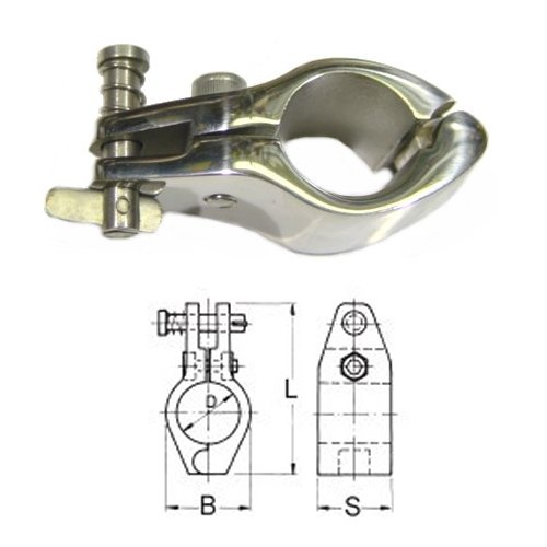 Aufklappbares Rohrmittelgelenkstück aus Edelstahl, mit Inbusschraube und Klappnasenbolzen