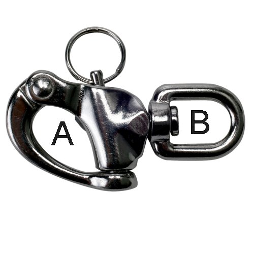Produktinformationen "Schnappschäkel mit Wirbelauge 90mm"