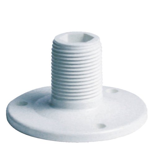 Flanschfuß rund KURZ aus weißem Kunststoff mit 1 Zoll Gewinde