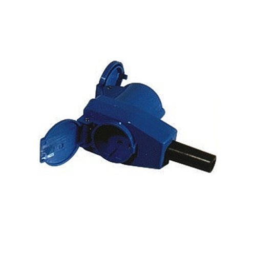 CEE Winkeldose mit Schuko-Steckdose passend für CEE-Einspeisungs-Stecker und CEE-Stecker.
