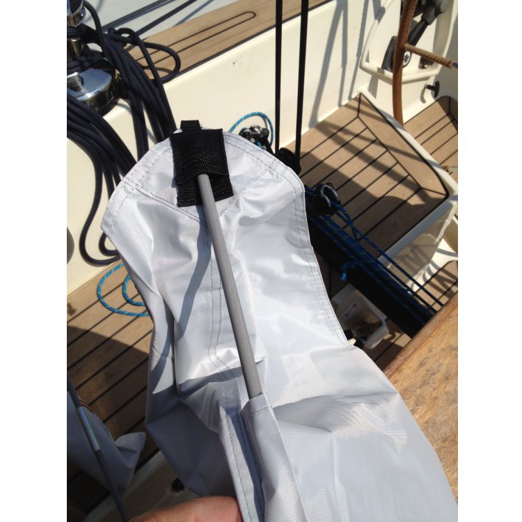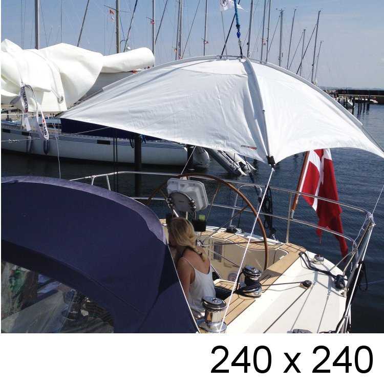 Praktischer, leichter Sonnenschutz für Segel- und Motorboote. Das Sonnensegel wird am Fall aufgehängt und mit Leinen fixiert oder einfach hingestellt.