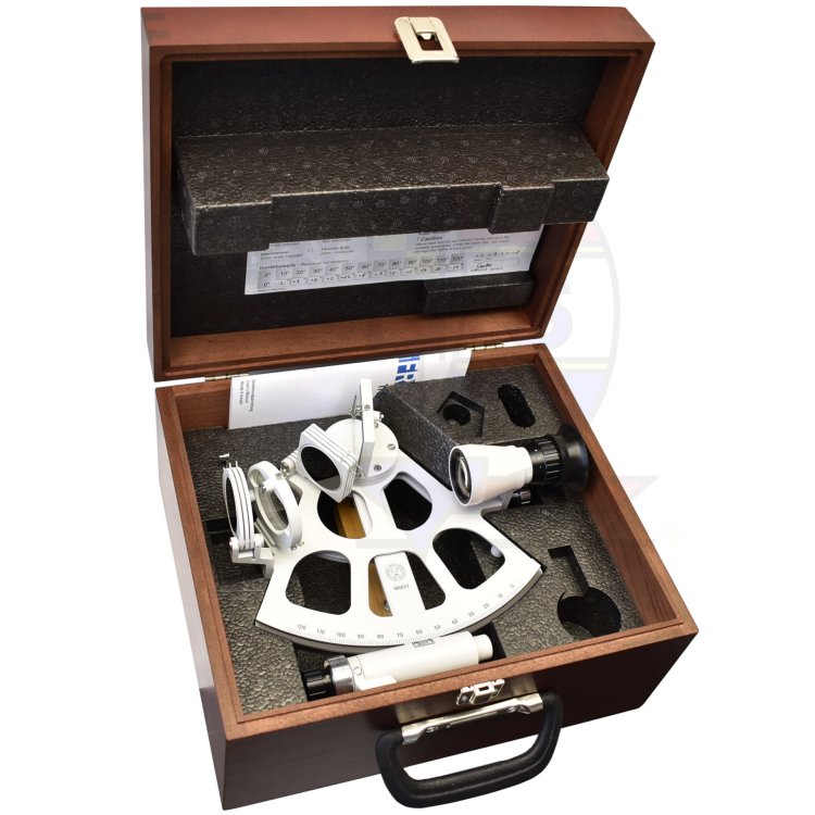 Das traditionelle Instrument zur astronomischen Ortsbestimmung. Bequeme Handhabung, leichtes Gewicht. Optimal geschützte Alhidade. Verzerrungsfreie Abbildung durch hochwertige Spiegel von exakterer Planparallelität, korrosionsfest versiegelt und feinfühlig justierbar. Helligkeitsabgleich der beiden Teilbilder durch einschwenkbare Filtergläser. Übersichtliche Trommelablesung, höhenverstellbares Fernrohr und Augenschmutzmuschel garantieren zuverlässige Messergebnisse.