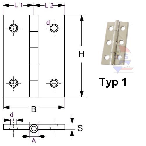 Scharnier Edelstahl 30x60 / 6L Typ 1