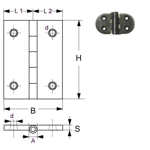 Produktinformationen "Sprenger Scharnier Kunststoff 76x40 / 4L"